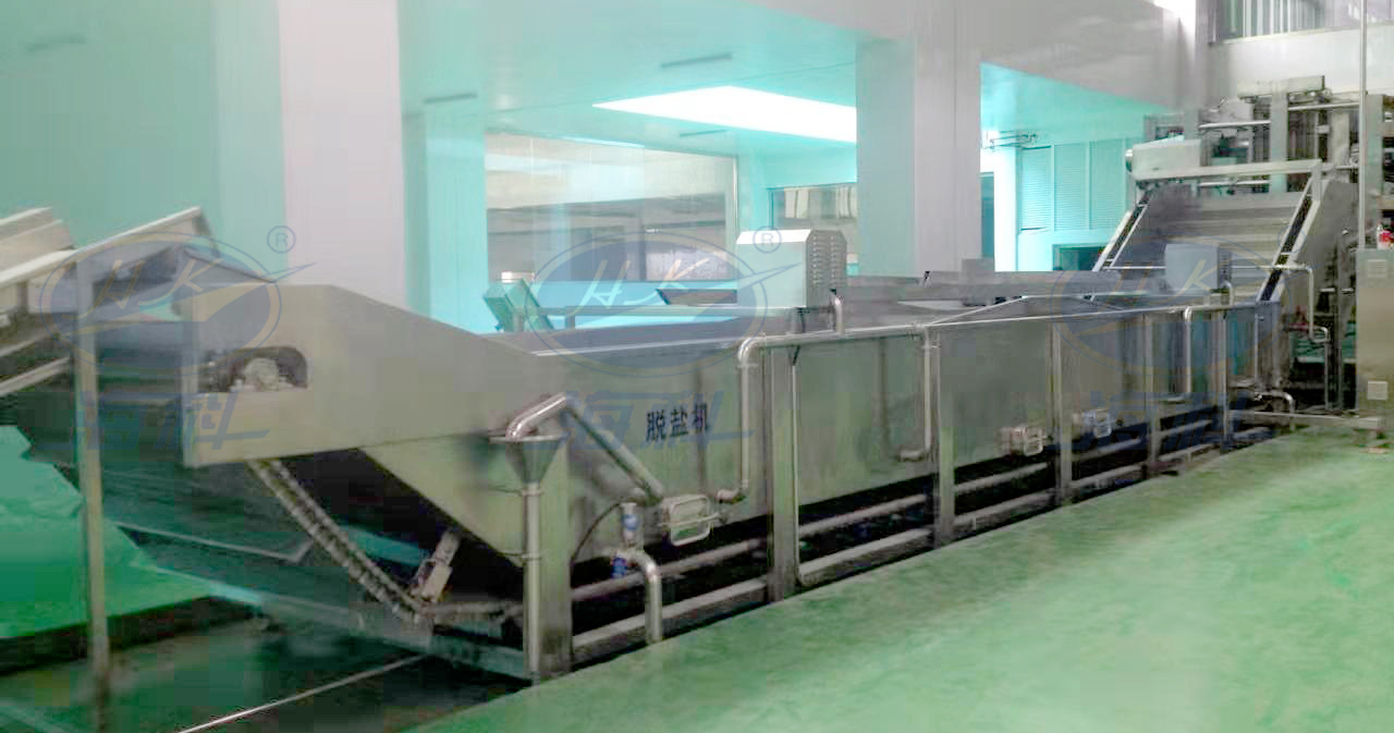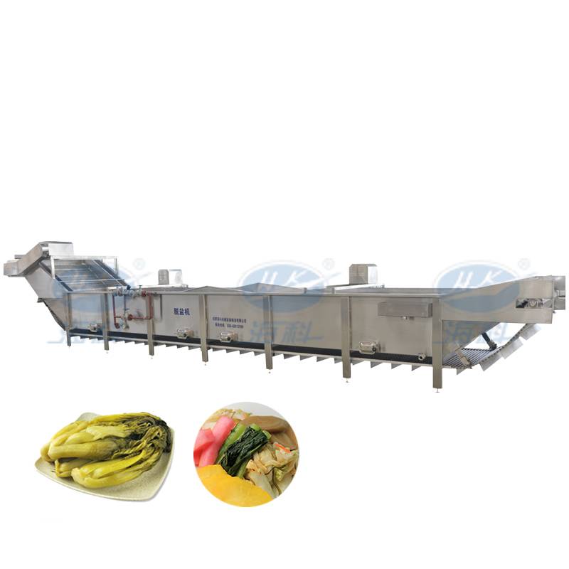該機是??圃诮Y(jié)合用戶的工藝基礎(chǔ)上,吸收國外先進技術(shù),自主創(chuàng)新設(shè)計制造的自動化設(shè)備,特別適合用于醬菜行業(yè)的產(chǎn)品生產(chǎn);把腌制過得蔬菜如蘿卜、榨菜、青菜等,通過鼓泡、沖浪和漂洗作用把高鹽度的腌制菜清洗干凈,同時也把鹽度降下來。